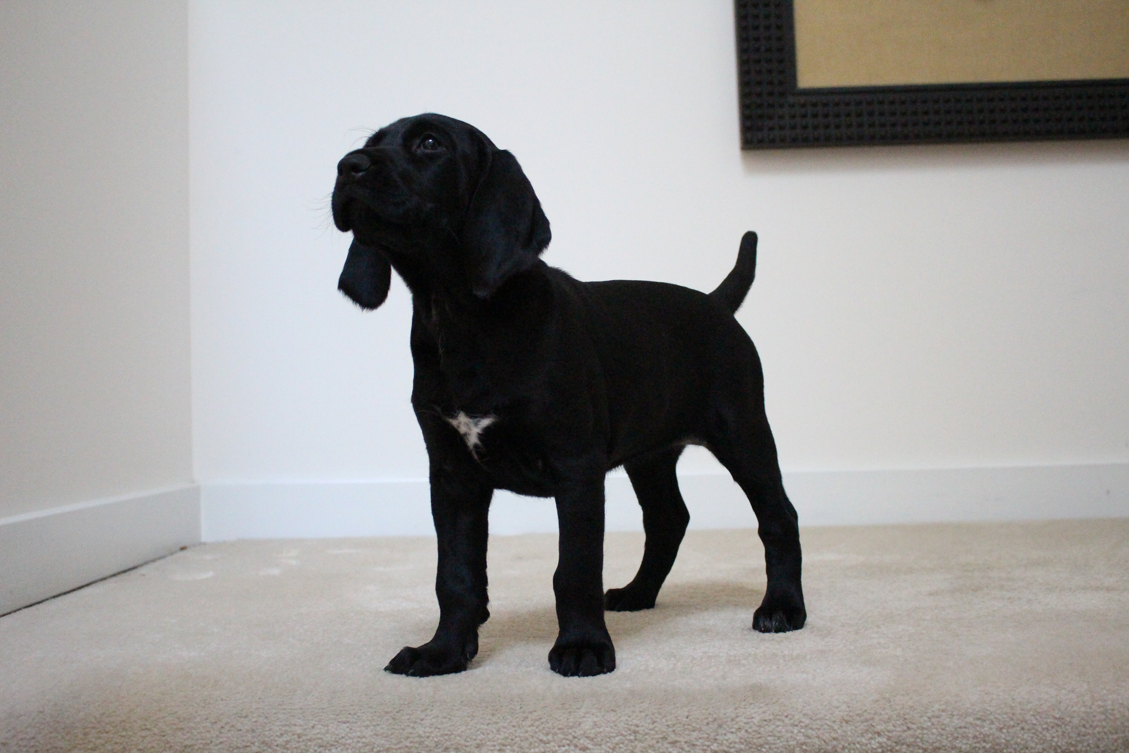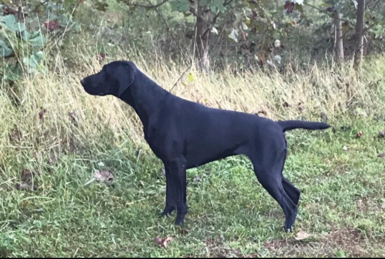 VGP Failed test when she retrieved rabbit in delayed fashion. Scored 4 times 4H under German judges (nose/pointing/search without duck/search with duck)